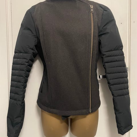 Pent og lite brukt jakke fra The Kooples. Kul rocket biker modell med hette gjemt bak glidelås i nakken.