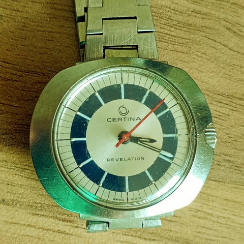 NOS Camy dag,dato og dag-i-uken visning. Meget pen skive og original Camy lenke. NOS aldri vært brukt. Kommer med tidsriktig boks