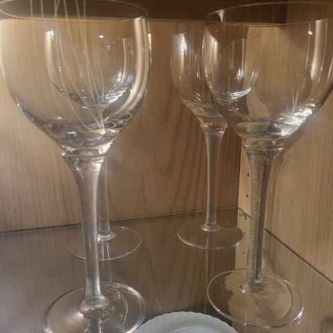 Fem flotte vinglass i keramikk av Torill Ringereide.