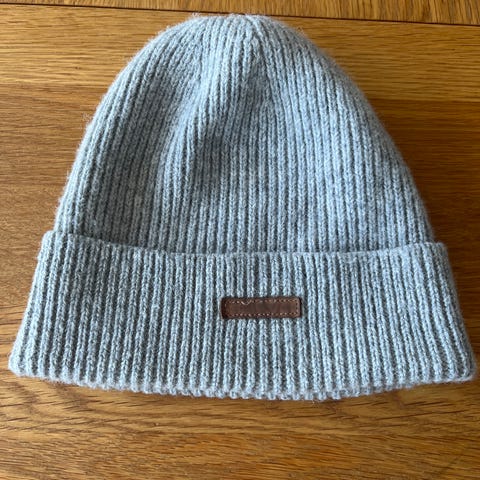Pierre Robert barnehue i størrelse One Size og Lillelam i størrelse 52-54, designet for unisex bruk. Huene er laget av mykt ullmateriale egnet for barn. Begge er pent brukte, men man ser fremdeles at de er brukt.