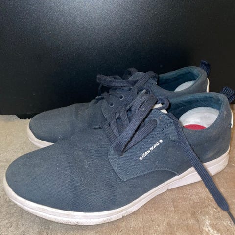 Björn Borg sneakers for herre i størrelse 41. Skoene er blå med hvite detaljer og har snøring. Materialet ser ut til å være tekstil eller syntetisk. Egnet for hverdagsbruk.