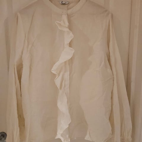 Nydelig skjorte i viskose, bomull og lin🤍 Vakre broderier nede på skjorta og på ermene. Denne er virkelig lekker! Så myk og behagelig å ha på🥰 Svært lite brukt, da den ble for liten, må bare innse at den ikke vil passe mer😉 Kan sendes 🌞 Ta gjerne en titt på mine andre annonser 🩷