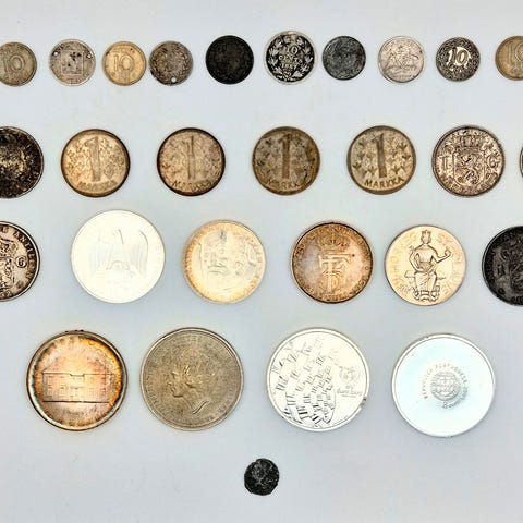 5x 10 öre sølv 2x 1961 1x 1962 2x 1950 sverige