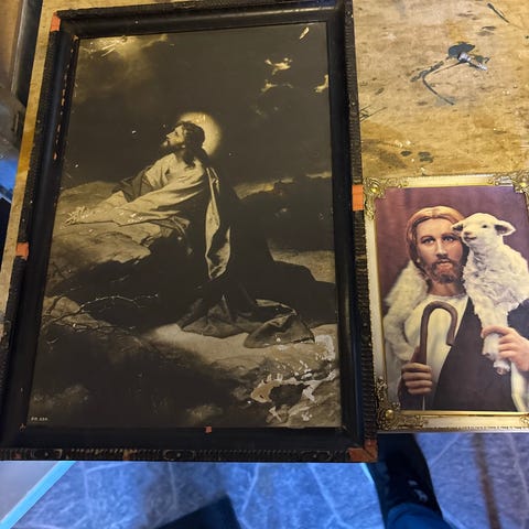 Kunst med antikk ramme selges.