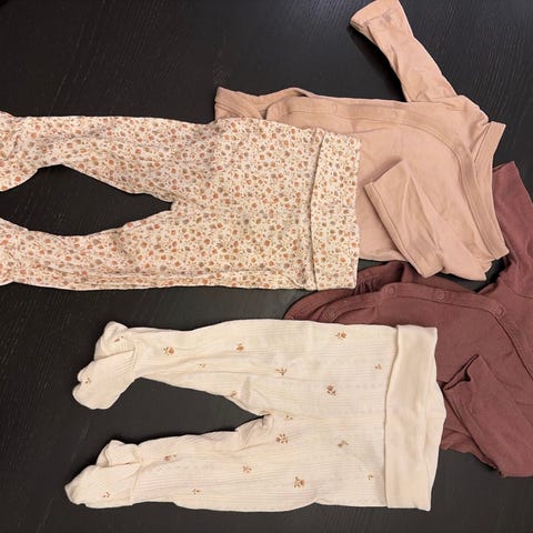 Buksepakke str 50 og 56, de to til venstre er str 50 og den grønne 56. Alle buksene er kjøpt nye i 2025 og er brukt av et barn.
