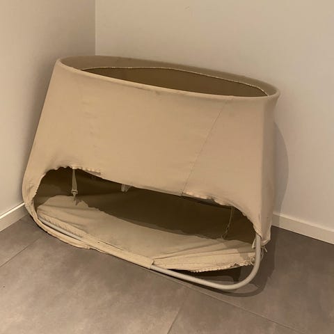 Veldig lett seng, som kan flyttes hvor som helst. Jeg hadde den i stua mens lille sov på dagtid.