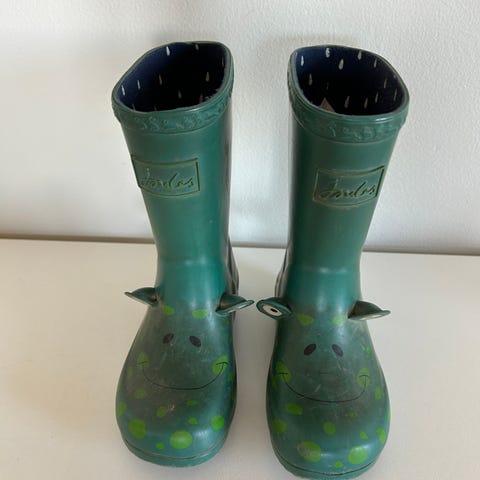 Brukte gummistøvler i størrelse 33 selges. Innersålen måler 20,5 cm. Støvlene er brukt, men mye bruk igjen.