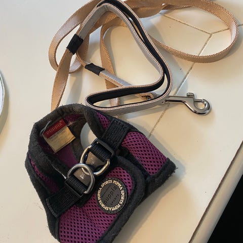 Ezy dog Y-Sele hundesele i størrelser for små til mellomstore hunder. Selene har polstrede bryststykker for komfort og er laget av slitesterkt materiale. Den rosa selen er i størrelse s, mens den brune selen er i størrelse medium. Begge selene har justerbare stropper og feste for kobbel.