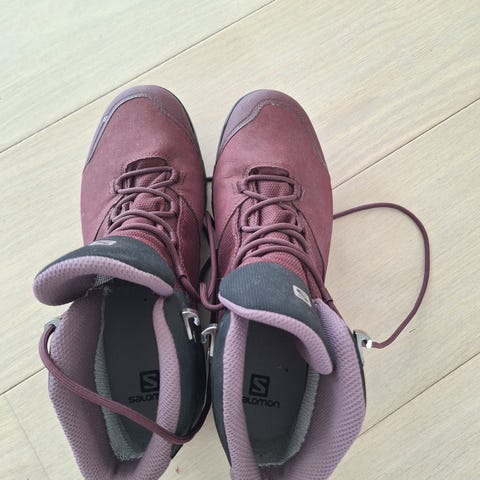 Salomon fotturstøvler i størrelse 42, svart farge. Egnet for fotturer og utendørs bruk. Laget med materialer som gir støtte og komfort under turer.