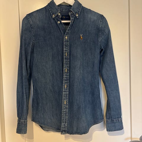 Lois Raval str.24, L:32. Mørk blå på farge. Må lappes bak ved eine lommen, derfor selges den billig. Ny pris: 1699kr.