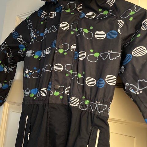 Pent brukt. Jakke så si ny. Buksen brukt litt mer, et lite sår på det ene kneet.
