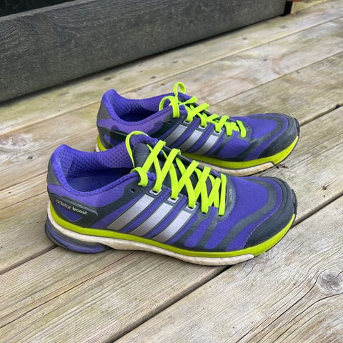 Retro Adidas Løpe Sko Str 38 med gule Snøringer
