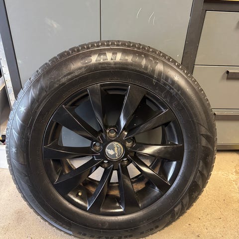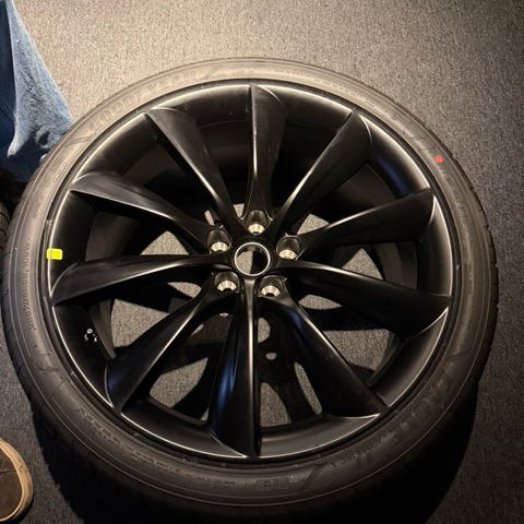 Sommerhjul 22" Tesla Turbine Onyx Black - Goodyear Eagle F1 Asymmetric 3 - 285/35-22 bak, 265/35-22 foran. Felger uten merker, i topp stand. Alle 4 dekk jevnt slitt. Ca 5mm mønsterdybder.