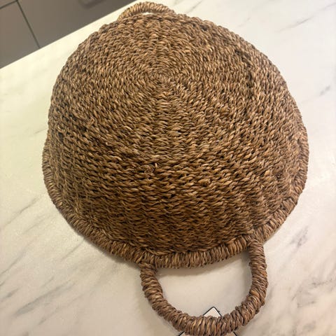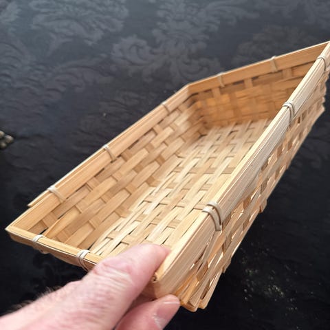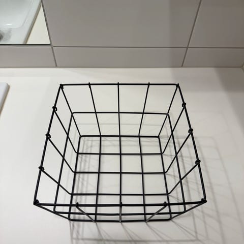 Kurven har et åpent design med runde hull, og kan monteres på vegg eller inni et skap. Perfekt for å samle plastposer, gavepapir, hansker, sokker eller småting på ett sted.