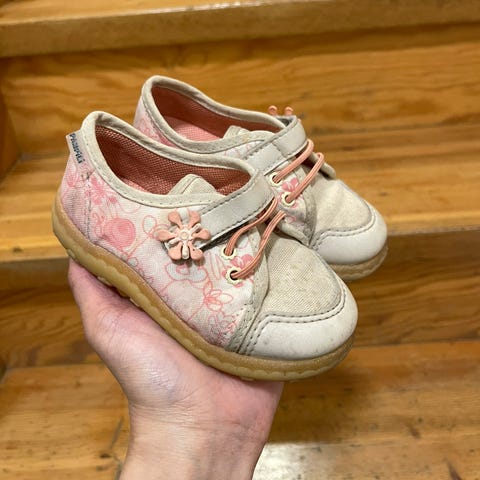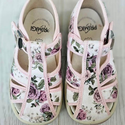 Vakkre sko med Velcro ,lakkert med fin blonde og blomster mønster . Aldri brukt i eske
