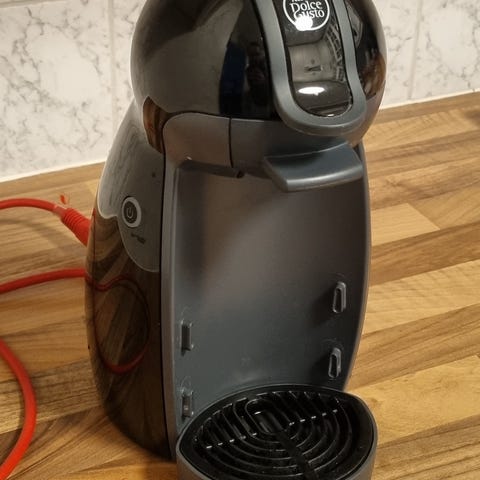 Dolce Gusto kaffemaskin i svart farge. Designet for bruk med Dolce Gusto kapsler. Kompakt størrelse. Brukt 2 ganger - som ny! 14. kaffekapsler følger med på kjøpet!☺️ ny pris på kaffemaskin var 899 i 2023.