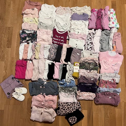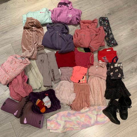 Klespakke i str 122-128, totalt 24 plagg.