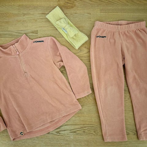 Selger pent og lite brukt fleecesett (jakke med glidelås og bukse) i størrelse 110.