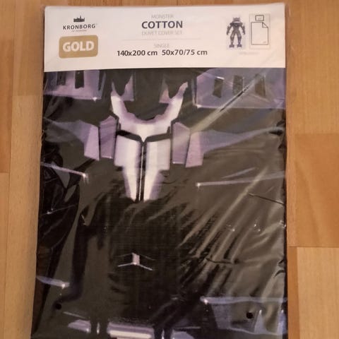 Sengesett med ape som hører på musikk. Mål: 140 x200 cm. Putetrekk 50x70 cm. Pent brukt uten hull og slitasje.