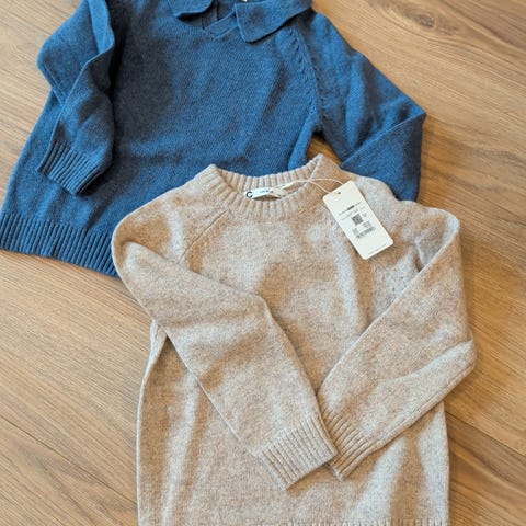 Strikkegenser fra cubus i str. 110/116 med volanger, i fargen grønn, 31% ull.