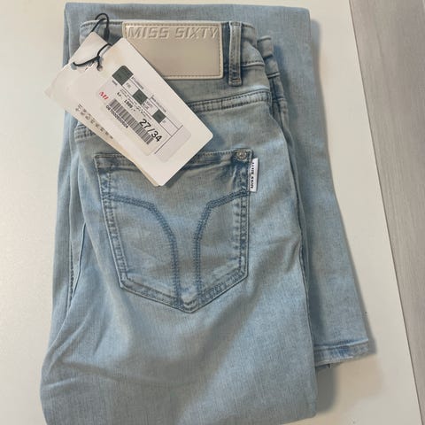 Miss Sixty Blå jeans i størrelse S med midjevidde W27. Jeansene er laget av denim og har klassisk blå farge. Passer til kvinner og kan brukes til hverdagslige anledninger.Virker litt lite i størrelse.