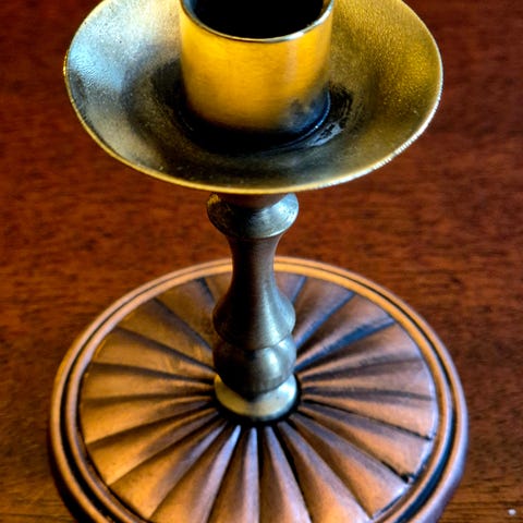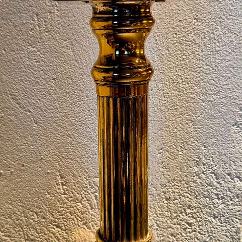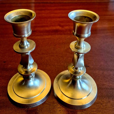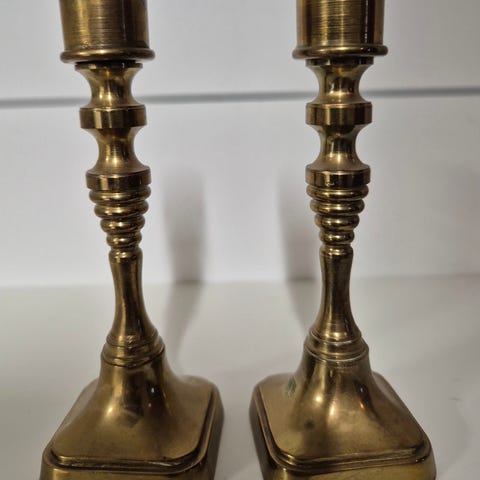 Nydelige nypusset liten messing lysestaker selges. Lengde 9,5 cm, høyde 4 cm.