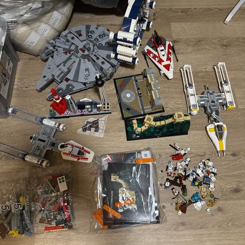 Ein del diverse LEGO selges samlet. Det selges billig fordi det ikkje følger med figurer og nokon klistermerke og brikker mangler. Original pris er på ca 10.000kr, men eg selger det for halvparten av dette😊 Eg vil gjerne få det henta, men kan også sende om det skulle vere til hjelp. Da vil eg også demontere slik at du kan bygge det opp igjen! Alle settene følger også med bruksanvisning! Eg kan også sende bilde om dette er ønskelig!😄
