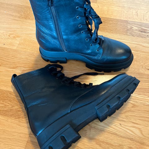 Unike og kule boots i ekte skinn fra britiske merke Fly London. Kjøpt i Storbritannia. Skoene er pent brukt, har snøring og glidelås. Litt høyde også. Str 38, normale i str og superbehagelige.