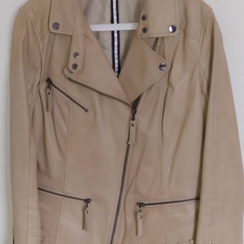 En tøff kort skinnjakke som jeg har brukt til både bukse, skjørt og kjole. Selger da den har blitt for liten ellers skulle jeg gjerne hatt den selv.