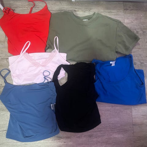 T-skjorte pakke (5 stk), alle i S/XS størrelse, men t-skjortene er i lose fit, så passer til en M også om du vil ha de litt mer ettersittende.