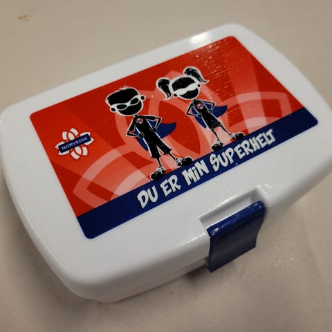 Boksen er pent brukt. Da boksen er i metall har det kommet litt bruksmerker rundt kanten under lokket og øverst på kanten rundt boksen. I tillegg til litt slitasje under selve boksen. Se bilder :)