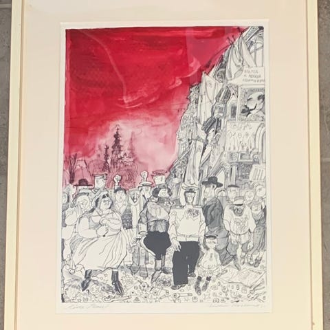 Meget pent tresnitt av Johannes Borchgrevink Hansen. Rammet inn med eikeramme og artglass hos Svaet Rammeverksted.
