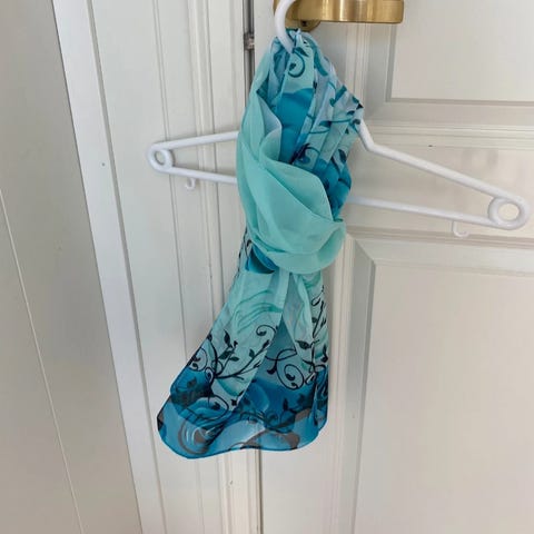 Lekkert skjerf i nydelige blåtoner. Lengde 170 cm, Bredde 52 cm. Sender gjerne med helthjem.
