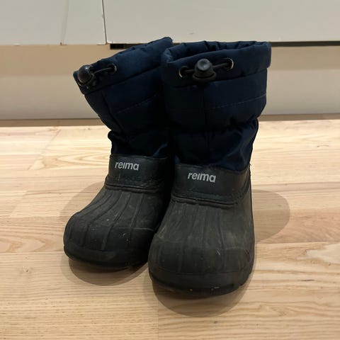 Reima Barents vinterstøvler for barn, unisex, størrelse 28. Støvlene er mørk blå med borrelås for enkel justering og har en isolerende fôr for varme. Sålen har godt grep, egnet for vinterbruk.