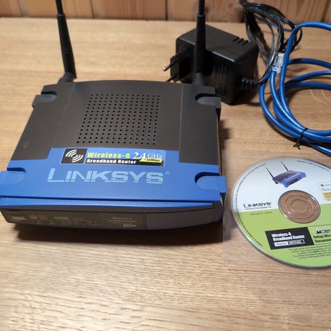 Du får med selve ruteren, strømforsyning, nettverkskabel og original emballasje. Den skal ikke ha vært brukt.
