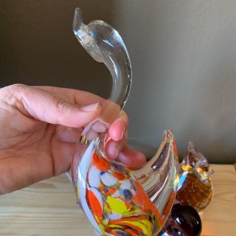 Eldre glassfigur som måler ca 10x8 cm