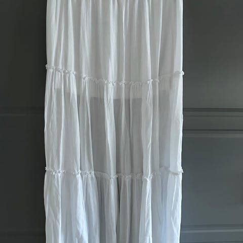 Langt blomster skjørt i str XL. Har noen rød/rosa prikker rundtomkring som jeg er usikker om er en del av motivet