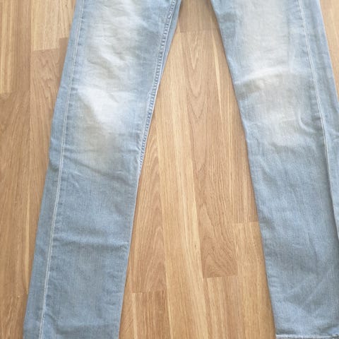 Klassiske straight fit jeans i lysblå denim. Fin slitasje, god stand.