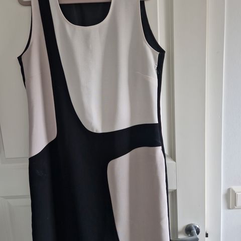 Denne kjolen har jeg kjøpt på reise! Svart og hvit med geometriske mønstre, utrolig kul! Fin over leggings eller med strømpebukse og en tøff jakke. Skikkelig statement-plagg. 100 % viscose, behagelig å ha på. Str er M/L står det inni. Den har ikke noe merke, så vet ikke hvem som har laget den. Tror den enten er kjøpt i London eller New York. Pent brukt, vil gjerne selge den til noen som bærer den med like mye glede som meg.