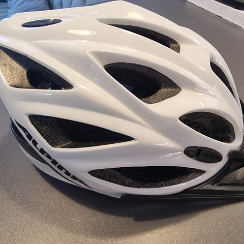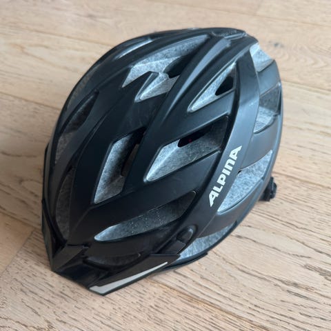 Alpina X-Light sykkelhjelm i størrelse L/XL (57-60 cm). Hjelmen er hvit og veier 200 gram. Den oppfyller CE EN 1078 sikkerhetsstandard. Modellen er fra 2015 og laget i Kina. Hjelmen har flere ventilasjonsåpninger for god luftstrøm.