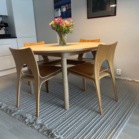 Bordet er i god stand med kun vanlige bruksmerker. Stabilt, lett og passer inn i både moderne og klassiske interiører.