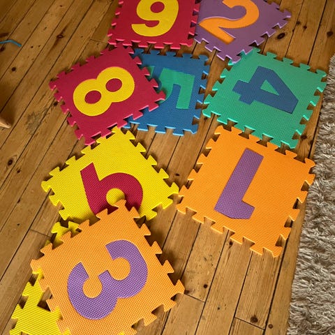 Selger puslematte med tall, 1-9. måler ca 90x90 cm