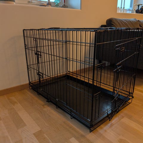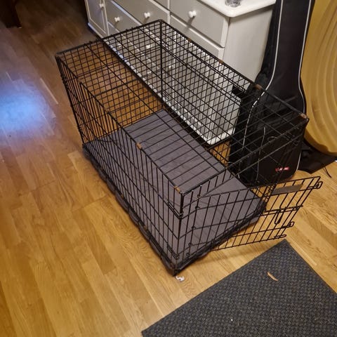 Selger hundebur fra Biltema. Har blitt brukt av en valp som nå har vokst opp. Noen bitemerker på låsemekanismen, men fungerer fortsatt helt fint. Laget av aluminium og skrår foran og bak sånn at det passer i bagasjerom.