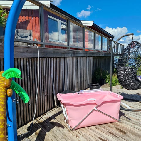 Stor Yngri badekar med stativ. Som ny, nesten ikke brukt.