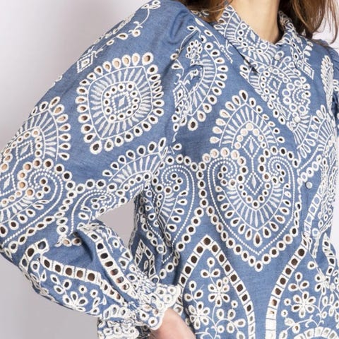 Munthe bluse i flerfarget mønster, størrelse 38 for kvinner. Laget av ECO Vero-viskose som gir et mykt og lett materiale. Blusen har knappelukking foran og langermet design. Kostet 2499 🌸
