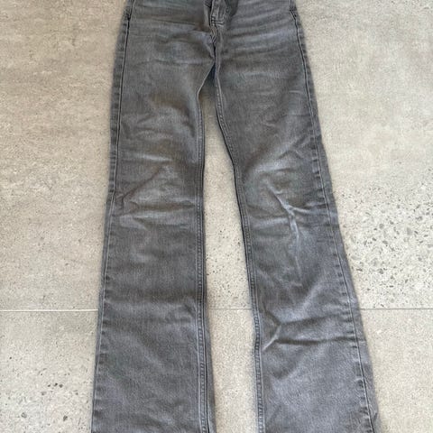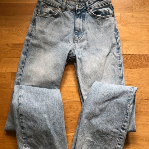 Selger disse fine lyseblå jeansa som er brukt litt å har ingen merker bortsett fra det som vises på bilde. Det har skjedd ved at buksa var for lang å har havna under skoene men ellers er den fin.