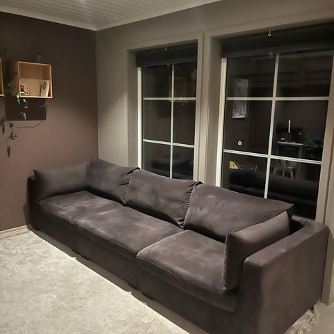 Usedvanlig deilig sofa som gir et avslappet, men eksklusivt uttrykk. Kjøpt ny i september 2023. Romslig sofa med plass til 3 personer. Modulene er polstret på alle sider, slik at de fungerer sammen og hver for seg hvis man ønsker å bygge på med flere moduler.