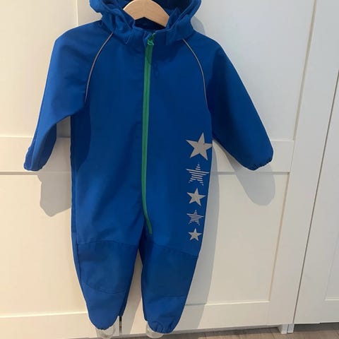 Parkdress fra refleks. Praktisk med strikk inni for å tilpasse kroppsfasong. Ingen hull eller synlig slitasje, men noen flekker på bena som ikke går bort i vask. Mye bruk igjen!