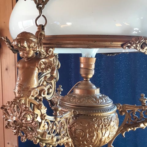 Taklampe i hvit porselen. Lampen består av flere deler som er pakket i en eske. Egnet for montering i tak.