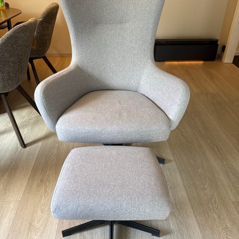 Selger en god lenestol med fotskammel fra IKEA. Regulerbar rygg. Utgått modell. Fin lys mintgrønn farge, men har noen områder med slitasje. Kan godt være at den blir finere med en rens/vask.